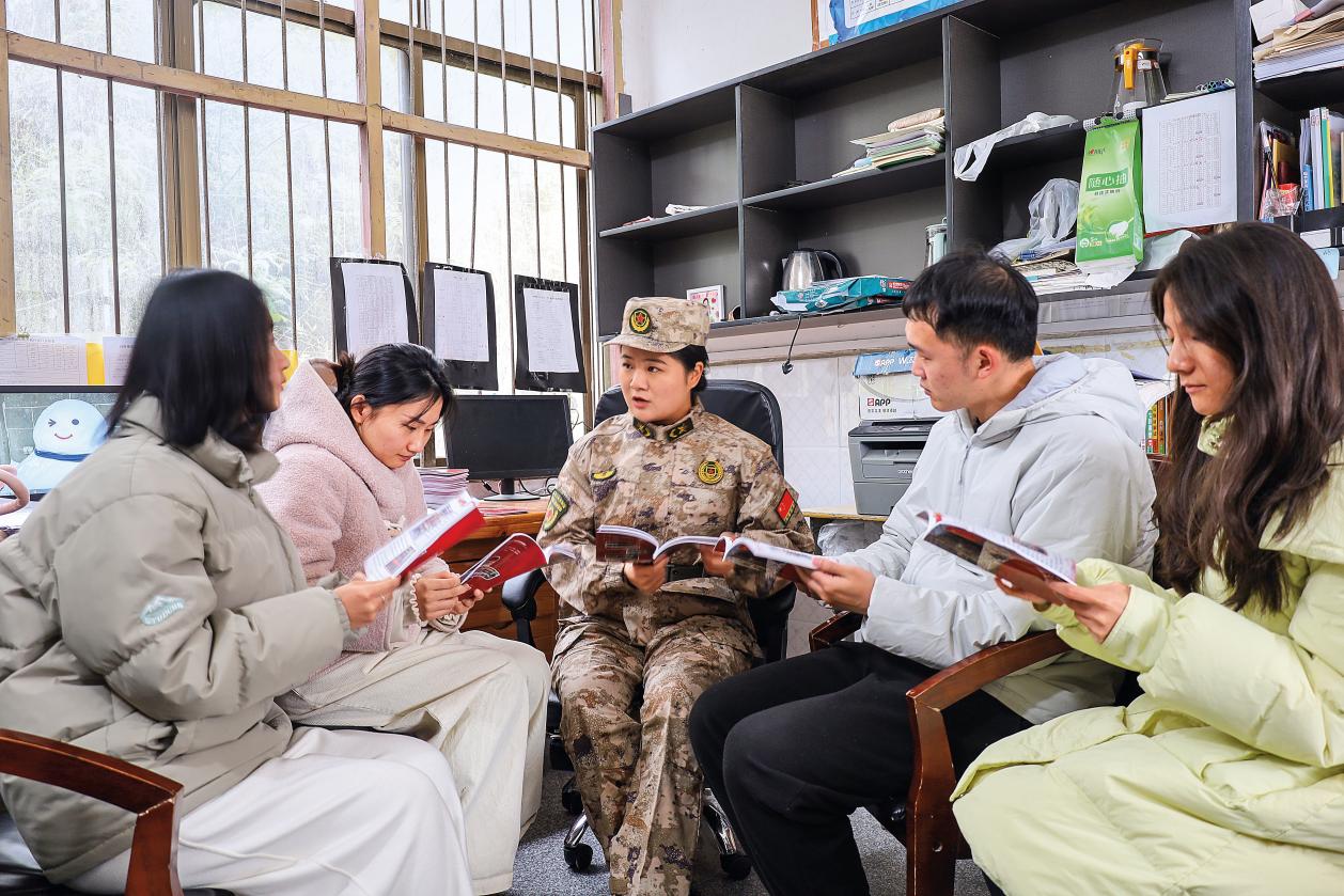 2024年岁首年月,由修水县军地结合编印的《高山红哨》校本教材出书并正在全县各中小学校推广,再次掀起“讲‘红哨’故事、学‘红哨’保守、赞‘红哨’、做‘红哨’传人”的高潮。这本教材的从编帅文慧就是黄龙山平易近兵排的平易近兵,也是一名土生土长的修水县人。她从小听着父辈们讲述黄龙山平易近兵排的故事长大,那一个个苦守大山做奉献的爷爷和伯伯们的事迹深深烙进了她的心里。2019年帅文慧大学结业后放弃正在城市工做的机遇,决然选择回抵家乡当上了一名村落教师,并颠末层层挑选最终如愿插手了黄龙山平易近兵排。