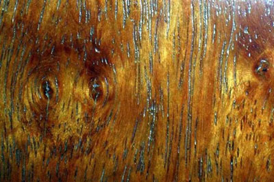 (5)根基花纹:根基部分的木材细胞排列极不规则,经刨切后,可形成悦目花纹,这种花纹称为根基花纹。