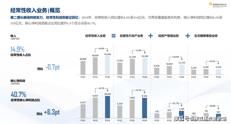 2024年,华润置地经常性营业焦点净利润初次冲破百亿大关,达人平易近币103。4亿元,贡献占比同比提拔6。3个百分点至40。7%。