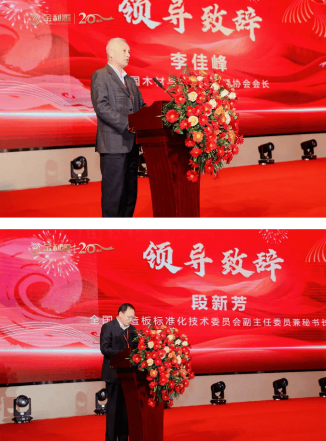正在这个灿烂而又崇高的时辰!华诞二十年,来自全国各地经销商家人取中国木材取木成品畅通协会会长——李佳峰,全国人制板尺度化手艺委员会副从任委员兼秘书长、中国林业科学研究院木材工业研究所尺度化取财产政策研究室从任——段新芳,中国木材取木成品畅通协会板材分会副会长兼秘书长——肖明,中南林业科技大学材料科学取工程学院院长——李新功,林业财产尺度化国度立异联盟秘书长、中国林业科学研究院木材工业研究所尺度化取财产政策研究室副从任——李晓玲,江西省婺源县企业结合会、企业家协会会长——汪培欣,江西省查验检测认证总院工业产物查验检测院(国度竹木产物查验核心)竹木核心从任、高级工程师——朱钦,江西省生态板协会会长——马跃华,江西省生态板协会秘书长——胡佩元,中国木业网董事长——李钰娇,中国建材网CEO——高晗,南京永达户媒无限公司第一事业部营销总监——亚胜,浙江帝龙新材料股份无限公司营销副总——徐鹏,金利源建材集团董事长——金国君,金利源建材集团总司理——李华 等协会带领、行业嘉宾、企业带领以及来自全国各地五百余位经销商家人们、合做伙伴配合出席嘉会,这一荣耀时辰!